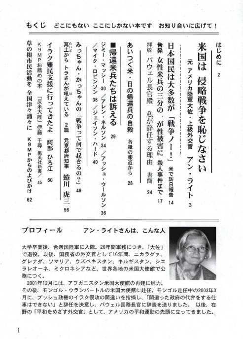 Protests at Obama's Hawaii Holiday Home mentioned in KHON TV newscast Dec 21, 2014 Photos of Protest at Obama's Hawaii vacation home December 2014 Dec 21, 2014 New York Times Editorial Prosecute Torturers and Their Bosses Dec 21, 2014 Ann Wright on RT TV Thom Hartmann's The Big Picture Show on the US Senate Report on Torture Dec 12, 2014 National Lawyers Guild Report New report by NLG Palestine delegation shines a light on political prisoners in Israeli jails Dec 1, 2014 Interview on Iraq with Thom Hartmann on Russia Today Aug 11, 2014 Beautiful 10 min video of the beautiful regions of Iran Apr 6, 2013 Telling the US Ambassador to Pakistan Why Pakistan is Dangerous for Americans--its our policies! Oct 5, 2012 CNN-American activists in Pakistan to protest U.S. drone strikes Oct 5, 2012 Blockade Busters -- Activists and Ships Attempting to Break the Israeli Blockade of Gaza Aug 23, 2012 Green-Washing War, Sinking Ships, Drones from Submarines -- Largest International War Games around Hawaii Jul 25, 2012 Article by Jesselyn Radack State Dept. Proposes Firing Whistleblower Peter Van Buren for Exercising 1st Amendment Rights Mar 15, 2012 Whistle blower LTC Daniel Davis Turth, Lies and Afghanistan Feb 9, 2012 State Department Whistle blower Peter Van Buren In Washington, Fear the Silence, Not the Noise Feb 9, 2012 Ten Great Things to be Thankful for on Thanksgiving-Ann Wright number 10 Nov 25, 2011 The damning of Tony Blair: Former PM to be held to account on Iraq in Chilcot report on war Read more: http://www.dailymail.co.uk/news/article-2020625/Iraq-inquiry-Tony-Blair-held-account-Chilcot-rep Jul 31, 2011 ElBaradei suggests war crimes probe of Bush team Apr 22, 2011 Interview on drones at Hancock Air Base-stop the drones Apr 22, 2011 1 Hr video from Syracuse, NY Ground the Drones, Stop the Wars Apr 21, 2011 ‘US Boat to Gaza’ organizers respond to Netanyahu charges against flotilla Apr 2, 2011 Netanyahu to UN Chief: Upcoming Gaza flotilla must be stopped Apr 1, 2011 Protest at Quantico for Bradley Manning with Dan Ellsberg Mar 21, 2011 Protest at Quantico for Bradley Manning with Dan Ellsberg #2 Mar 21, 2011 Soldier, Dad, Whistleblower: Atheist in a Foxhole Takes on Evangelistic Military Hierarchy Mar 14, 2011 State Dept spokesperson PJ Crowley resigns over Bradley Manning remarks Mar 13, 2011 Pvt Manning: Is Army Aping Mafia? by Ray McGovern Mar 5, 2011 The Cost of US Terrorism in Afghanistan: Incalculable by Kathy Kelly Mar 4, 2011 Kucinich compares Bradley Manning detention to Abu Ghraib Mar 4, 2011 A father speaks for his son (who wes executed by the Israeli military on the Gaza flotilla Feb 24, 2011 Father of teen killed in Gaza flotilla raid seeks American justice Feb 22, 2011 My Tortured Journey With Former Guantanamo Detainee David Hicks Feb 17, 2011 Turkey unveils its final report on Israeli attack on Gaza-bound aid convoy Feb 12, 2011 Israel’s whitewash report into the Mavi Marmara massacre Feb 9, 2011 Turkey's report: Israeli troops shot dead activists before raid Feb 9, 2011 Turkey's interim report on Israeli attack - part 2 Feb 9, 2011 Turkey's interim report on Israeli attack - Part 3 Feb 9, 2011 Naomi Klein in The Nation Goldstone's Legacy for Israel Jan 27, 2011 1 hr Swedish TV program on the Gaza Flotilla Jan 8, 2011 Dear Afghanistan January 1, 2011 campaign Stephanie Westbrook's letter to La Stampa, Italy's 3rd largest newspaper Jan 4, 2011 4 photos Protesters Meet Obama Motorcade in Hawaii Jan 2, 2011 OpEd in Vancouver, Canada Straight.com Canadian Boat to Gaza campaign is legal, ethical, and necessary Dec 31, 2010 Linda Pershing's article Winter Soldiers Confront the White House: Mass Arrests as They Put Their Bodies on the Line for Peace Dec 23, 2010 Afghan Youth Supply Their Answer to US's December Review Dec 23, 2010 Boston Globe-Post office to be named for fallen Marine Alex Arredondo who grew up in Jamaica Plains Dec 17, 2010 Police arrest 100-plus anti-war demonstrators at White House fence Dec 16, 2010 Army Set to Award Mega-Contract to Train Afghan Cops Dec 16, 2010 Pulitzer-winner, ex-CIA analyst, FBI whistleblower among those arrested outside White House (with video) Dec 16, 2010 VIDEO: Police Arrest 131 Antiwar Protesters In Front Of White House Dec 16, 2010 Photos of Vets for Peace stop the wars action at the White House Dec 16, 2010 LT COL (Dr) Terrence Lakin Sentence: 'Army Birther' Gets 6 Months In Military Prison Dec 16, 2010 Richard Holbrooke Represented the Worst Side of the Foreign Policy Establishment Dec 15, 2010 Next post Air Force Is Through With Predator Drones-buying more Reaper drones instead Dec 14, 2010 Abercromie sworn in as Hawaii governor-Caraway adds spark Dec 7, 2010 UK Guardian "Wikileaks: US pressured Spain over CIA rendition and Guantánamo torture" Dec 1, 2010 WikiLeaks: How could one person leak so much classified material? Nov 30, 2010 Former Guantanamo Bay adversaries visit ethics class-LTC Vandevel Nov 23, 2010 The Silent Truth Documentary aka The LaVena Johnson Murder Cover-Up Nov 12, 2010 Hecklers disrupt Netanyahu's speech at U.S. Jewish conference Nov 8, 2010 VP Biden pledges unwavering support for Israel Nov 7, 2010 VP Biden pledges unwavering support for Israel Nov 7, 2010 AWOL soldier refusing deployment because of severe PTSD Nov 5, 2010 Palestinian-Gaza filmmaker and journalist Fida Qishta speaks about her films on Gaza last night at the U.S. to Gaza Fundraiser in the Busch Campus Center. The event, sponsored by BAKA: Students United http://www.dailytargum.com/news Nov 5, 2010 Letter to editor of Rutgers University newspaper "Allow BAKA (Palestinian) event to continue" Nov 4, 2010 RT video of wikileaks-with Ray McGovern Oct 26, 2010 Recent revelations by WikiLeaks show how top American leaders lied, knowingly, to the American public, to American troops, and to the world. Oct 26, 2010 Karzai says his office gets cash from Iran, US Oct 25, 2010 Karzai says his office gets cash from Iran, US Oct 25, 2010 Julian Assange H